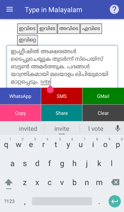You don't need to be exact in typing the word like most other apps and this 'Type in Malayalam' app is intelligent enough to understand what you are typing.